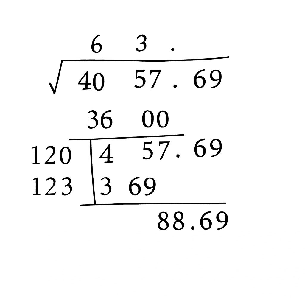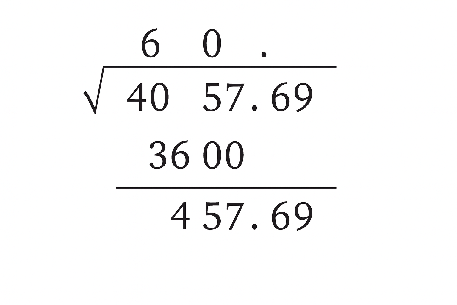 Now let’s see what the algorithm is doing. To do so,√we will consider it first as a problem in geometry. You should agree that finding 4057.69 is equivalent to finding the side of a square with area 4057.69. That is also the way the Greeks would have seen this problem 2300 years ago.
