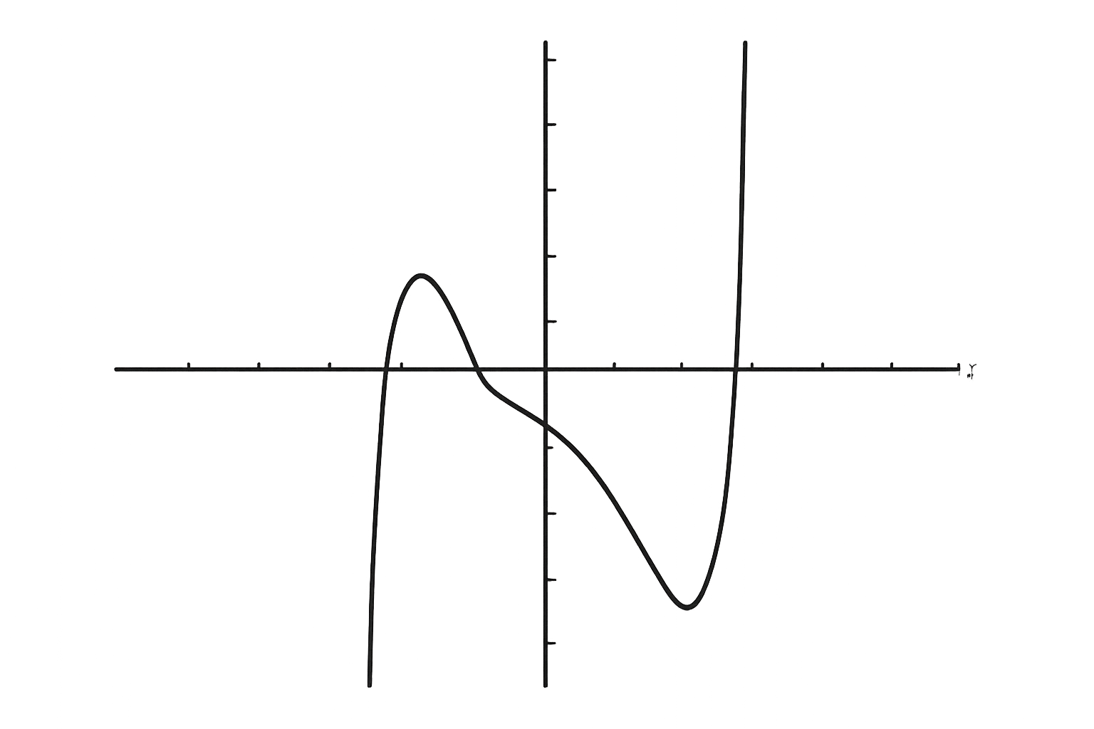 Now think about what we have done. We replaced 0 with y so any solutions or roots of equation (2.4.1) will appear on the graph when y = 0. Of course y = 0 when the graph crosses the x-axis and you can see immediately that equation (2.4.2) has three solutions that are located -2 < x1 < -1, -1 < x2 < 0. and 1 < x3 < 2. And if we can design a way to locate those x-axis crossings, we will have a way to solve our equation.