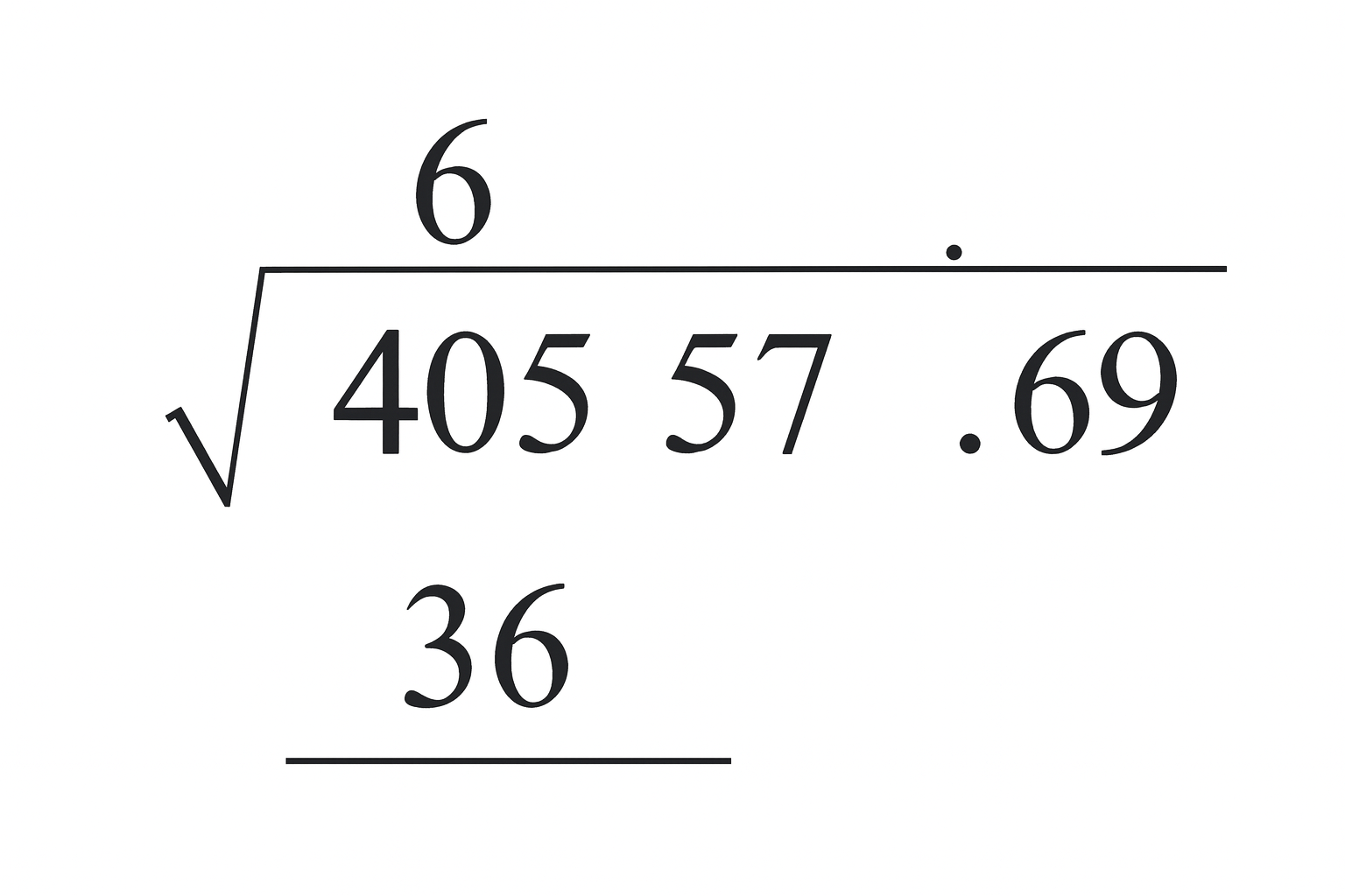 2. Find the nearest square less than or equal to the leftmost Write this square below and its square root above that pair.