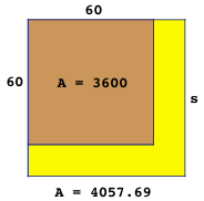 We know that 602 = 3600 < 4057.69 < 4900 = 702, so we can fit a 60 x 60 square inside this figure.