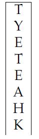 Now the characters are printed on a narrow vertical strip, but reading the letters by columns; thus, the strip would begin: