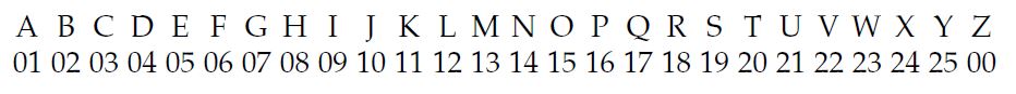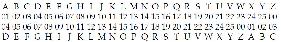 With no further shift CROSS THE RHINE would be encrypted as: IEPTT HOK EOWMK. The program of Panel 5.2.2 carries out this ciphering process for you. Notice that it works for both ciphering and deciphering. If we use a shift of 3 letters, the pairing would be: