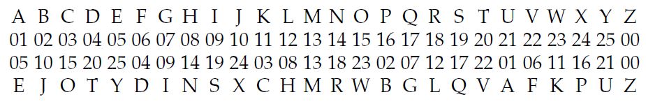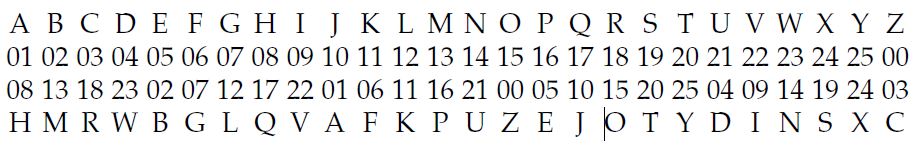 A secret agent would be able to recreate that list from memory and it represents only one of millions of possibilities for such coding.73 This code can then be used with an additional Caesar shift or directly (with a further shift of 0.)