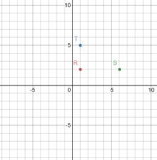 17. Give the coordinates of each point: R, S and T. Give the coordinates of a fourth point U which will make a rectangle when all the points are connected. Locate point U on the graph.