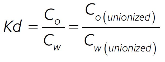 Kd = the molar partition coefficient for the specific solute irrespective of pH and for the specific organic phase