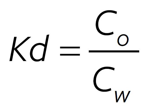 Where, Kd= Partition coefficient or Distribution coefficient and