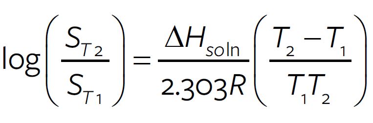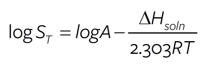 ΔHsoln is a property of solute molecule. A more convenient common logarithmic form of the same equation is often used.