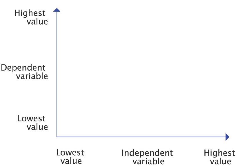 When discussing feedback and describing how a change in one variable affects a change in some other variable, it is often helpful to show the relationship between the two variables on a graph. The variable we place on the X-axis (abscissa, or horizontal line at the bottom of the graph) is the independent variable, so-named because we assume that its value is not dependent on the value of the other variable of interest. In contrast, the variable we place on the Y-axis (ordinate, or vertical line forming the left side of the graph) is the dependent variable, so-named because we assume its value depends on the value of the independent variable. We sometimes call the dependent variable the response variable because its value changes in response to changes in the independent variable. See Figure 1-5 for a depiction of a relational graph.