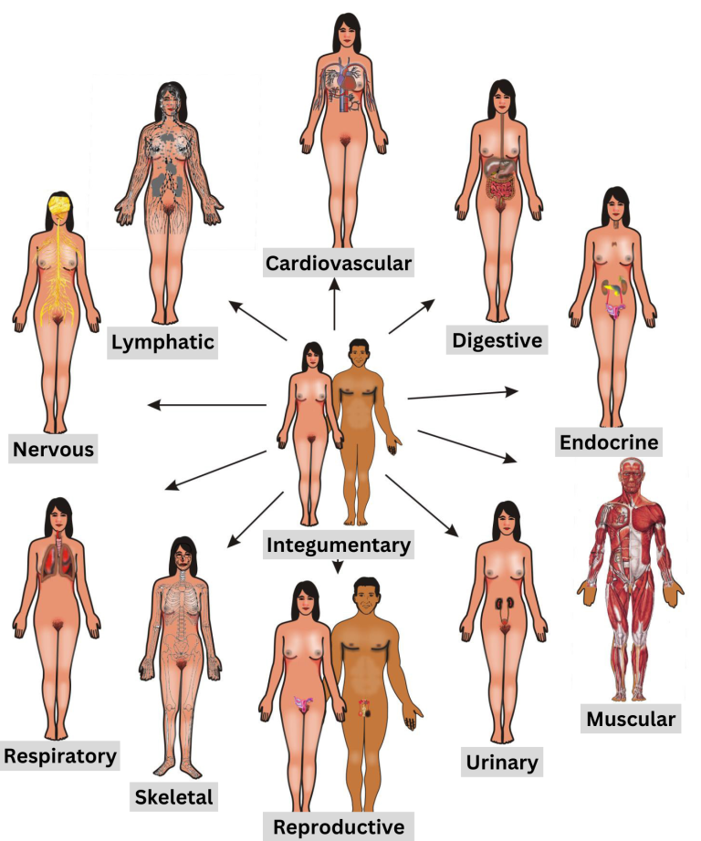 - Nervous: brain, spinal cord, nerves,sensory organs