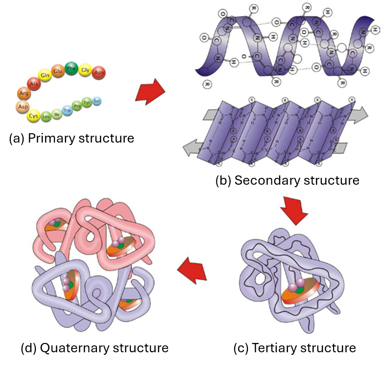 The structure of a protein can exist at four different levels of complexity (see Figure 3-11):