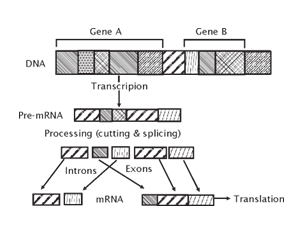 In addition to cleaning up a pre-mRNA molecule by removing introns, mRNA processing offers another advantage. By splicing exons together in different sequences, a single gene can generate more than one functional mRNA molecule. This explains how the human genome’s approximately 30,000 functional genes can give rise to more than 100,000 different proteins in the body.