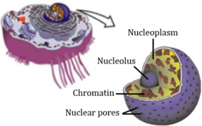 In order for an organization to sustain itself and grow, it must have an effective leader and the same holds true for the highly organized cell. In this chapter, we complete our tour of a typical body cell with a look at the cell’s “chief supervisor,” the nucleus. After describing its form and chemical makeup, we will explain how the nucleus controls the cell’s day-to-day activities through the action of its genetic material, DNA. Finally, as a logical connection to an upcoming chapter, the study of groups of cells called tissues, we will conclude this chapter by explaining how cells reproduce.