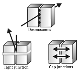 Cells may be “stuck” together in a variety of ways, but the two most significant ways are: (1) via the “sticky” glycocalyx (sugar coats) on the surfaces of the cells; and (2) via specialized junctions, which include desmosomes, tight junctions, and gap junctions (Figure 7-1).