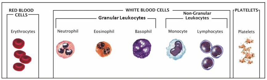 The blood’s formed elements include red blood cells, white blood cells and platelets