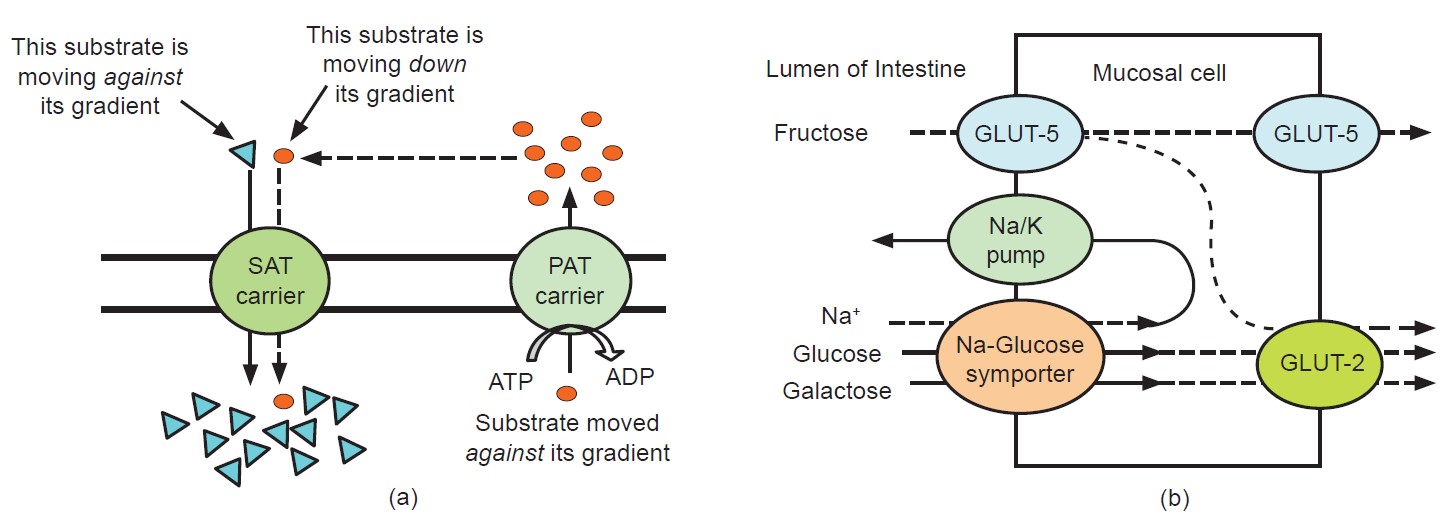 Most discussions of ATP synthesis begins with glucose, which is the most common carbohydrate circulating in your blood. While free glucose molecules may exist in the diet, they most often enter the body bound together in long chains called complex carbohydrates (polysaccharides). Let’s first look at how carbohydrates are absorbed into the blood.