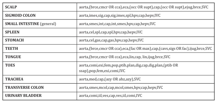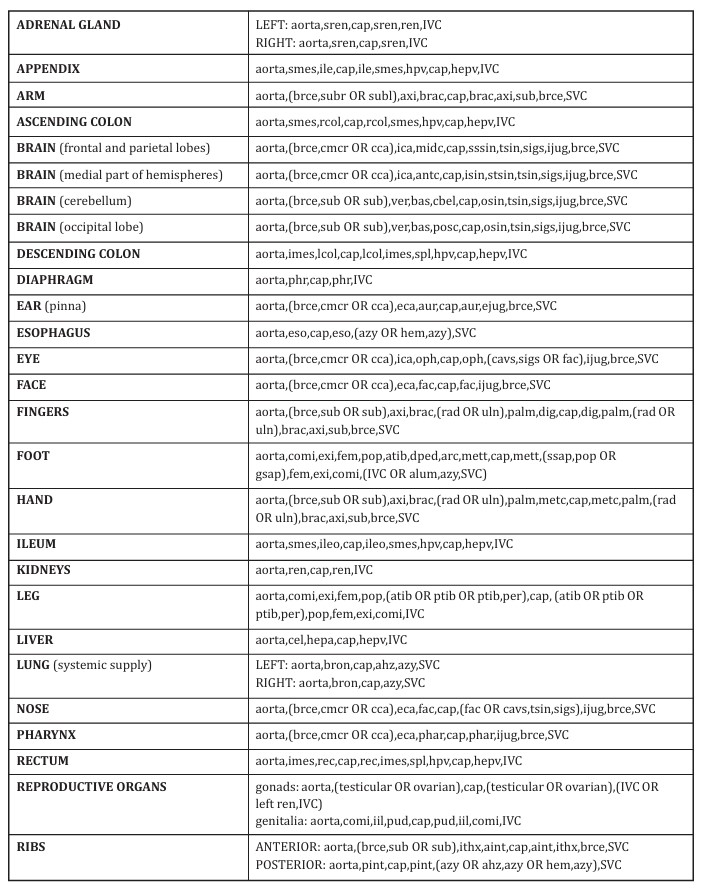 Table 26-4. Generic acronyms for vessels used in systemic blood traces
