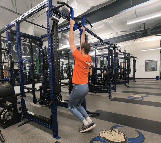 Looping towels over the bar and grabbing the end using a neutral grip (palm facing in like you are shaking someone’s hand) will utilize the forearms more and help increase grip strength to a greater degree
