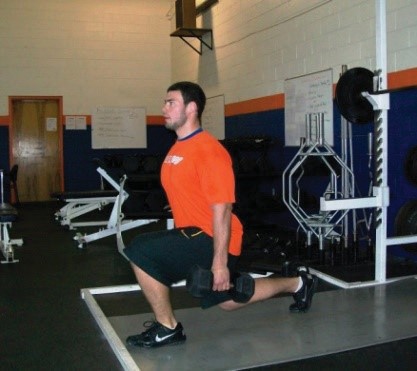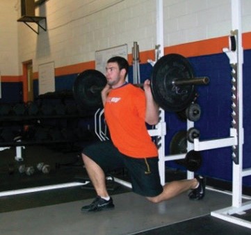- Push up on the front leg, extending the knees and hips back to the starting position.