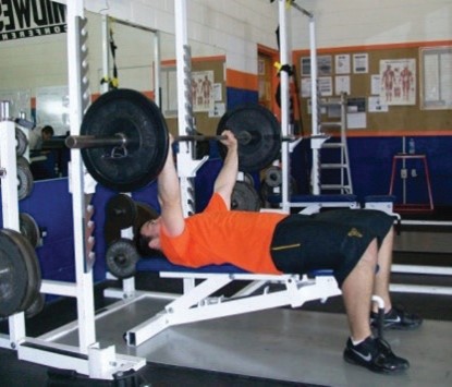 - Pushing the elbows up and inward will form a rack on which the bar will rest while also keeping the chest up during the movement