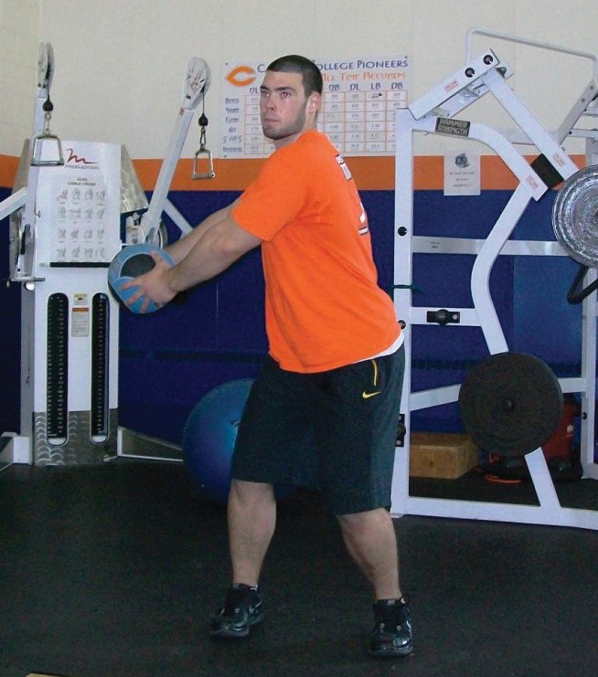 - Take the ball on the left side, twist torso and bring the ball to the right side